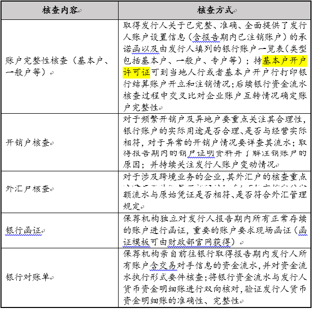 保荐机构和申报会计师应当充分评估发行人所处经营环境、行业类型、业务流程、规范运作水平、主要财务数据水平及变动趋势、所处经营环境等因素,确定发行人相关资金流水核查的具体程序和异常标准,以合理保证发行人财务报表不存在重大错报风险。发行人及其控股股东、实际控制人、董事、监事、高管等相关人员应按照诚实信用原则,向中介机构提供完整的银行账户信息,配合中介机构核查资金流水。中介机构应勤勉尽责,采用可靠手段获取核查资料,在确定核查范围、实施核查程序方面保持应有的职业谨慎。在符合银行账户查询相关法律法规的前提下,资金流水核查范围除发行人银行账户资金流水以外,结合发行人实际情况,还可能包括控股股东、实际控制人、发行人主要关联方、董事、监事、高管、关键岗位人员等开立或控制的银行账户资金流水,以及与上述银行账户发生异常往来的发行人关联方及员工开立或控制的银行账户资金流水。