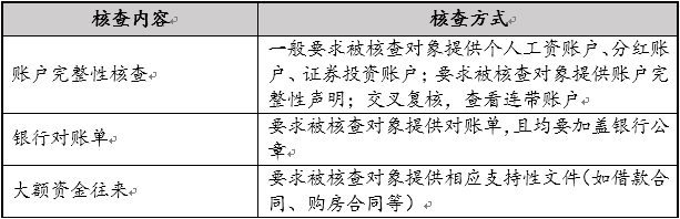 ②银行流水交易的抽样核查:交易金额在前述核查标准以上(比如资金流入方20万元以上;资金流出方30万元以上)的全部检查,交易金额在设定金额以下的进行随机核查;