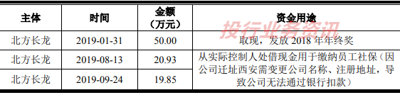 (3)前后回复内容存在不一致情形,首轮问询回复称发行人报告期内仅发生一笔大额取现 50 万元,为发放 2018 年奖金;第二轮问询回复增加了从实际控制人处借 2 笔现金用于缴纳员工社保情形。2019 年 12 月发行人实际控制人控制的长龙投资从发行人处收到 2,100.00 万元分红款,资金流向为陈跃向发行人增资 1,400 万元,长龙投资将 700 万元用于向发行人增资,经核对股权转让时间,发行人的分红时间与增资完成时间存在不一致。