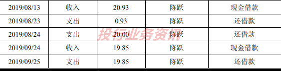 由上表可知,发行人实际控制人陈跃及其配偶账户中,境内账户大额现金流出主要为 11 笔共计 319.79 万元,用途主要为换汇、家庭支出、借款等。